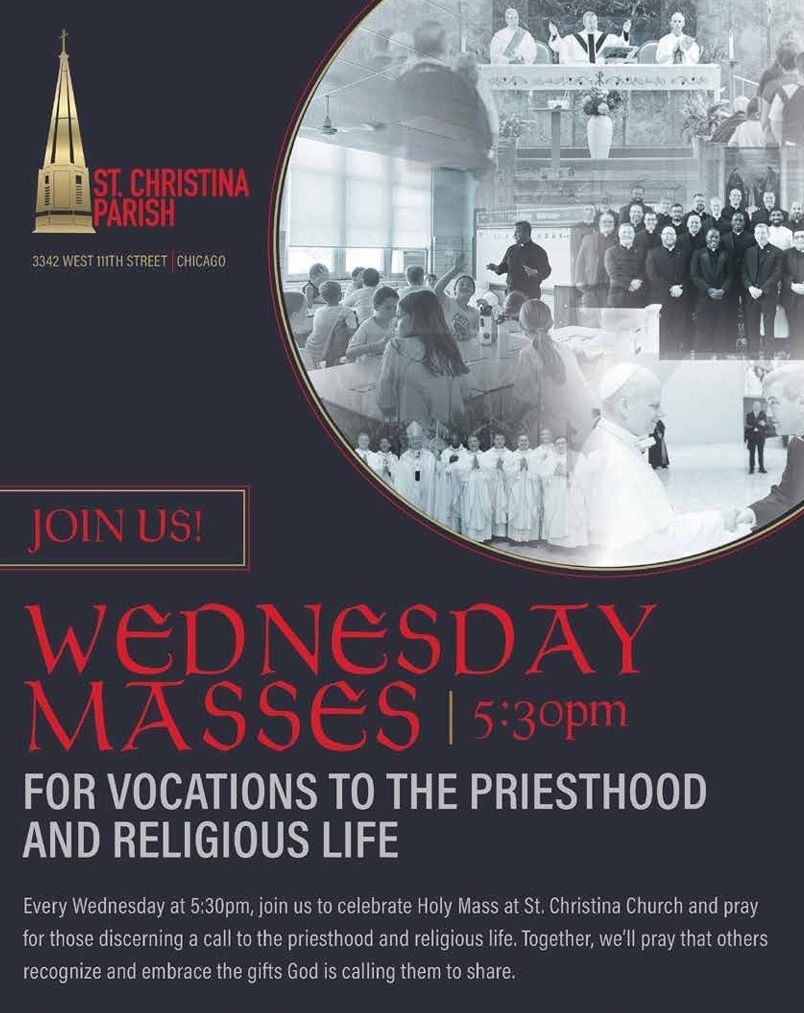 You may be the second or third generation of your family at St. Christina Parish. Or, your family may be new to Mt. Greenwood. You may be returning to the Catholic Church after searching elsewhere. Or, you may be Catholic and simply seeking a new parish home. Whomever you are and wherever you’re coming from, you will find warmth and belonging at St. Christina. You’ll find family. Please explore our website to learn more about our Mass times, ministries, organizations, and opportunities to become involved.