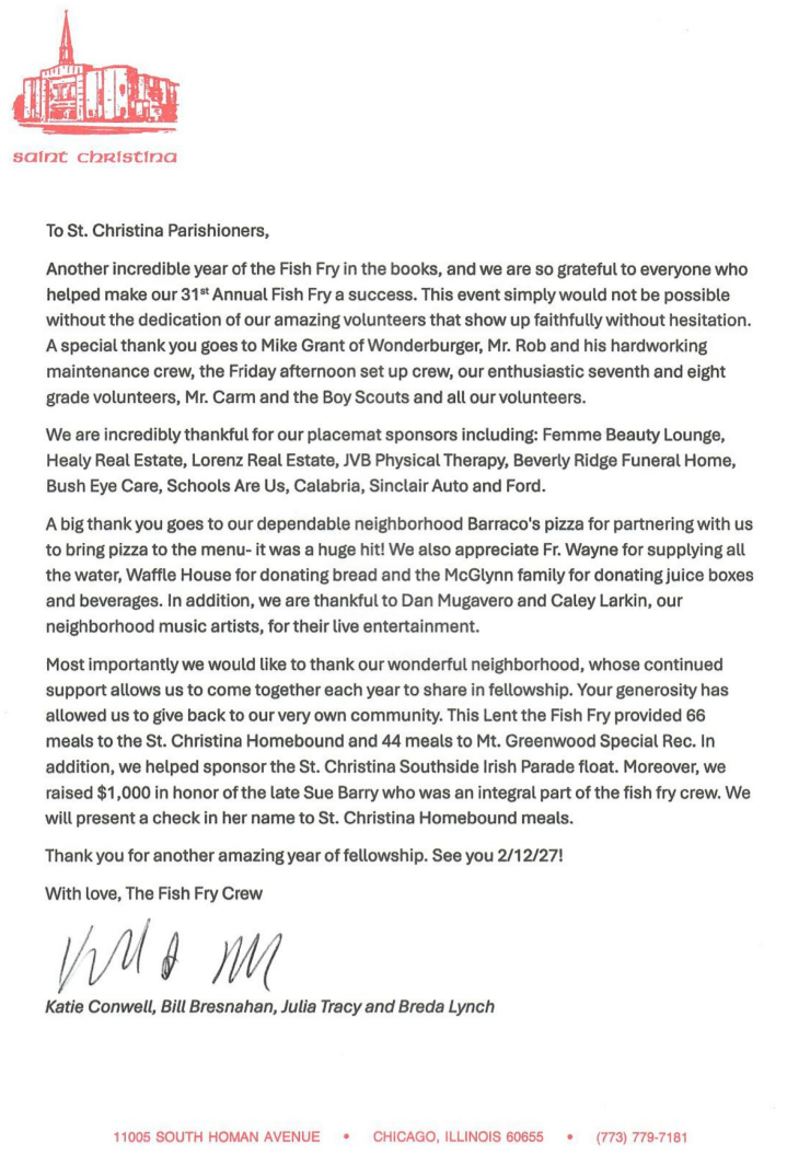 St. Christina Catholic Parish is a Catholic community of faith called to be God’s Holy People. Continually formed and fed by Our Lord in Word and Sacrament, together we strive to love and serve, invite and unite, support and challenge one another to joyfully live and proclaim the Gospel of Jesus Christ.