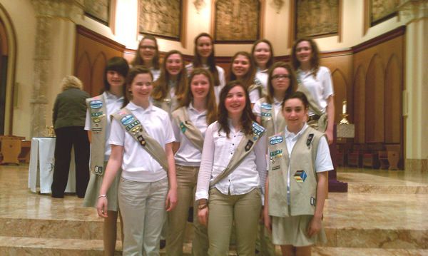 The Marian Award is the highest Catholic Medal a Girl Scout can earn in the Cadette level of scouting. This prestigious award is given out each year at a ceremony in March at Holy Name Cathedral by one of the Archdiocese’s Bishops.