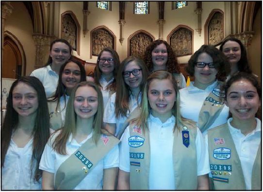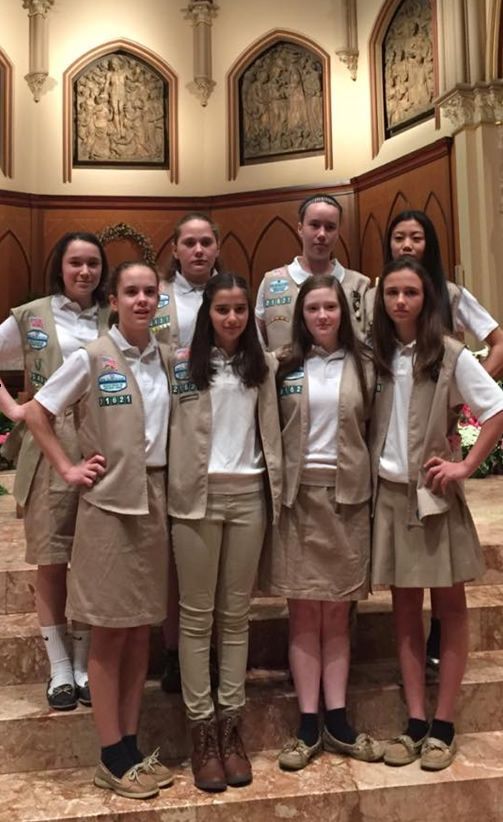 On Sunday, April 10, 2016, Cadette Girls Scouts from the Archdiocese of Chicago were recognized at Holy Name Cathedral. Eight young women from St. Christina received the Marian Award which is the second highest Catholic award given to the Girl Scouts. These girls have been meeting weekly since September as they learned about themselves, their friendships, family relationships and about Mary, the Mother of God being a strong role model in their lives.
