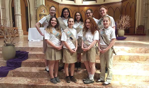 Special recognition goes to the Marian Award recipients of the 8th Grade Girl Scouts who received this prestigious award at Holy Name Cathedral on Sunday, March 19, 2017. The young ladies have worked hard to learn about the life of Mary, the Mother of God and how she is a strong role model for young women today. These girls have met weekly since September as they have created an in-depth booklet, planned and led First Saturday Masses, and performed numerous service hours through the Giving Tree Program and the Lenten Fish Fry.