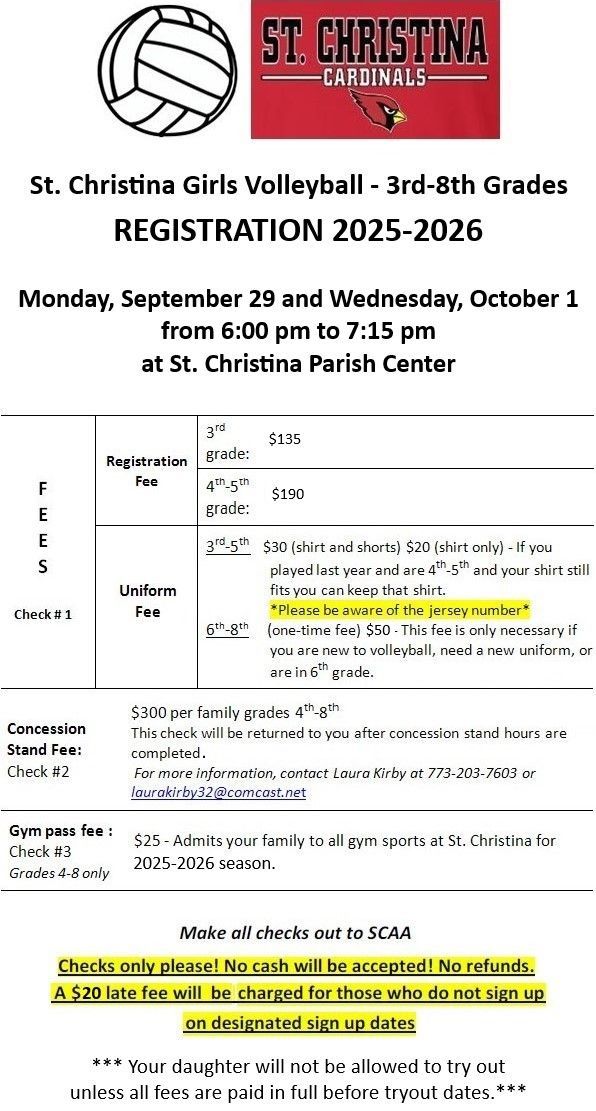 The St. Christina Athletic Association offers Girls Volleyball in Grades 3-8.
