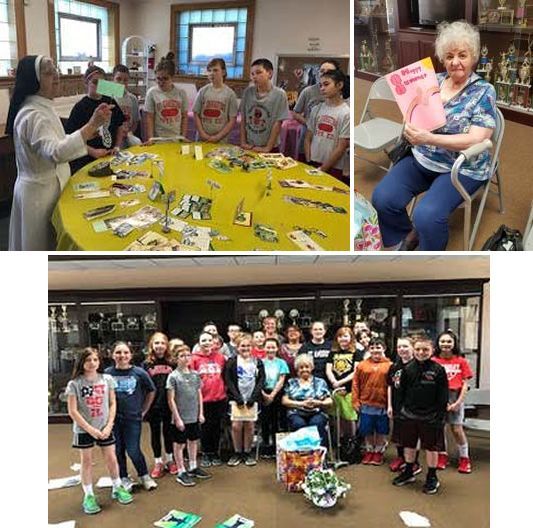 Sister Ann Vincent has done a fine job pairing each homeroom in our school with a homebound person. The students enjoyed writing to their homebound person throughout the school year, especially around the holidays. The fifth graders of Room 14 had the opportunity to meet Mrs. Morelli, their homebound person.