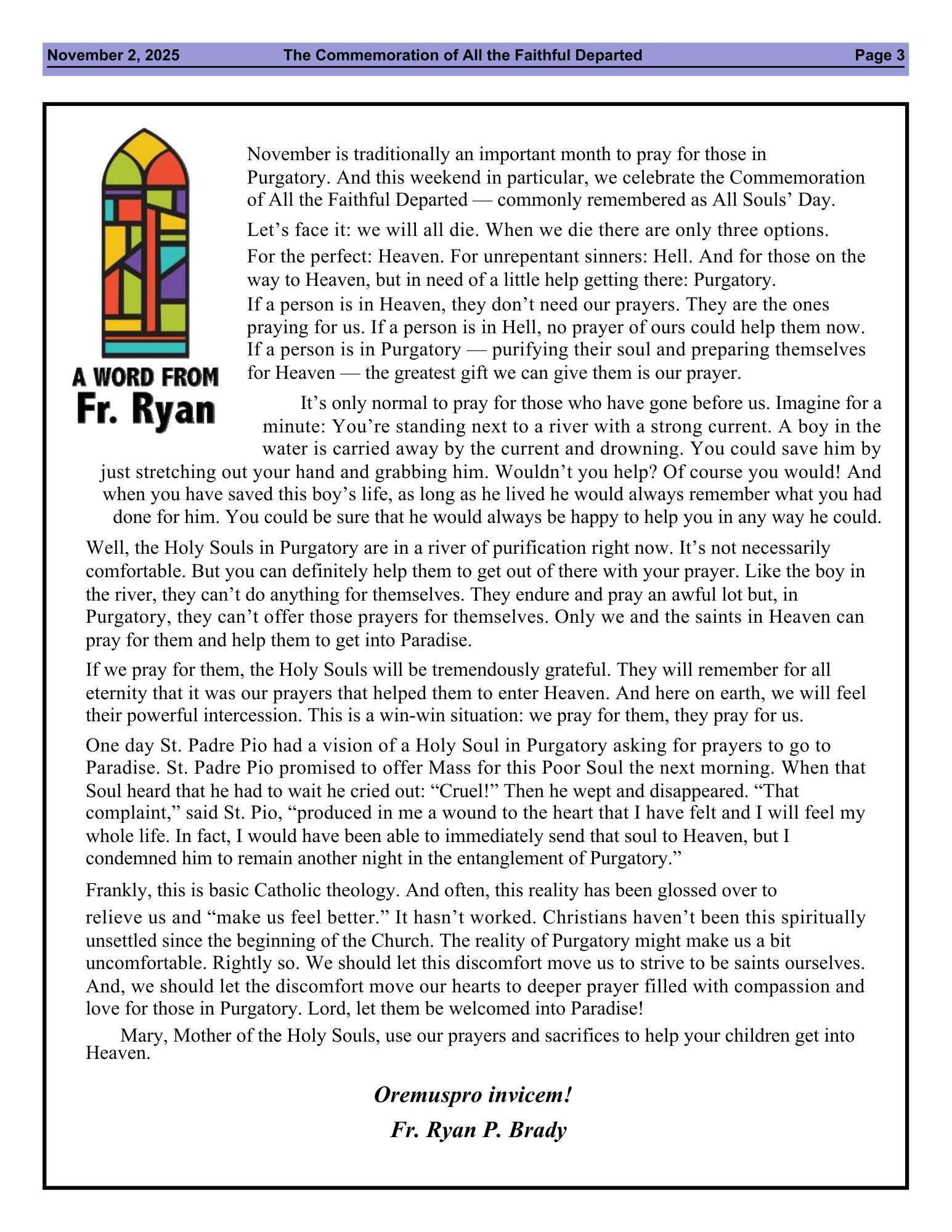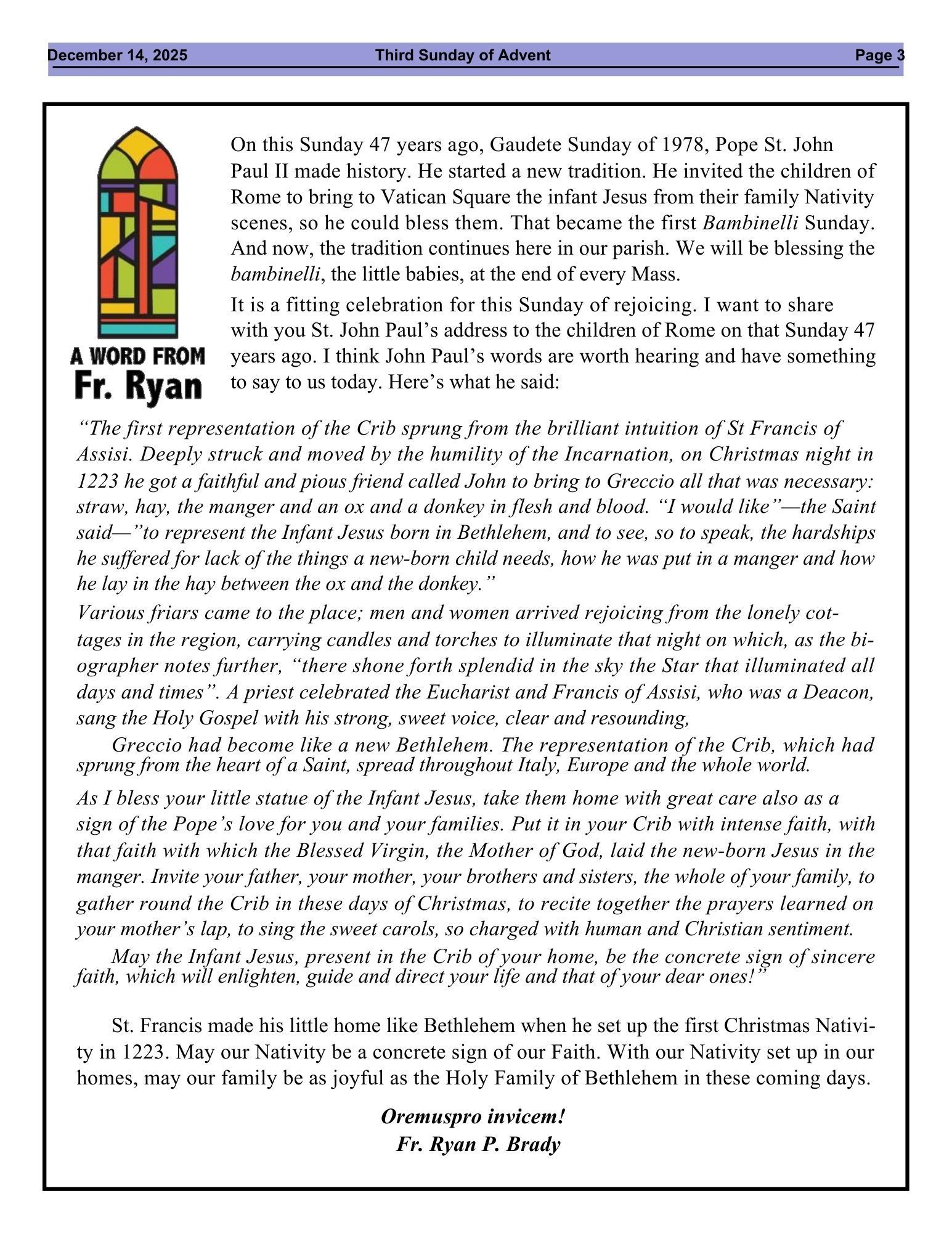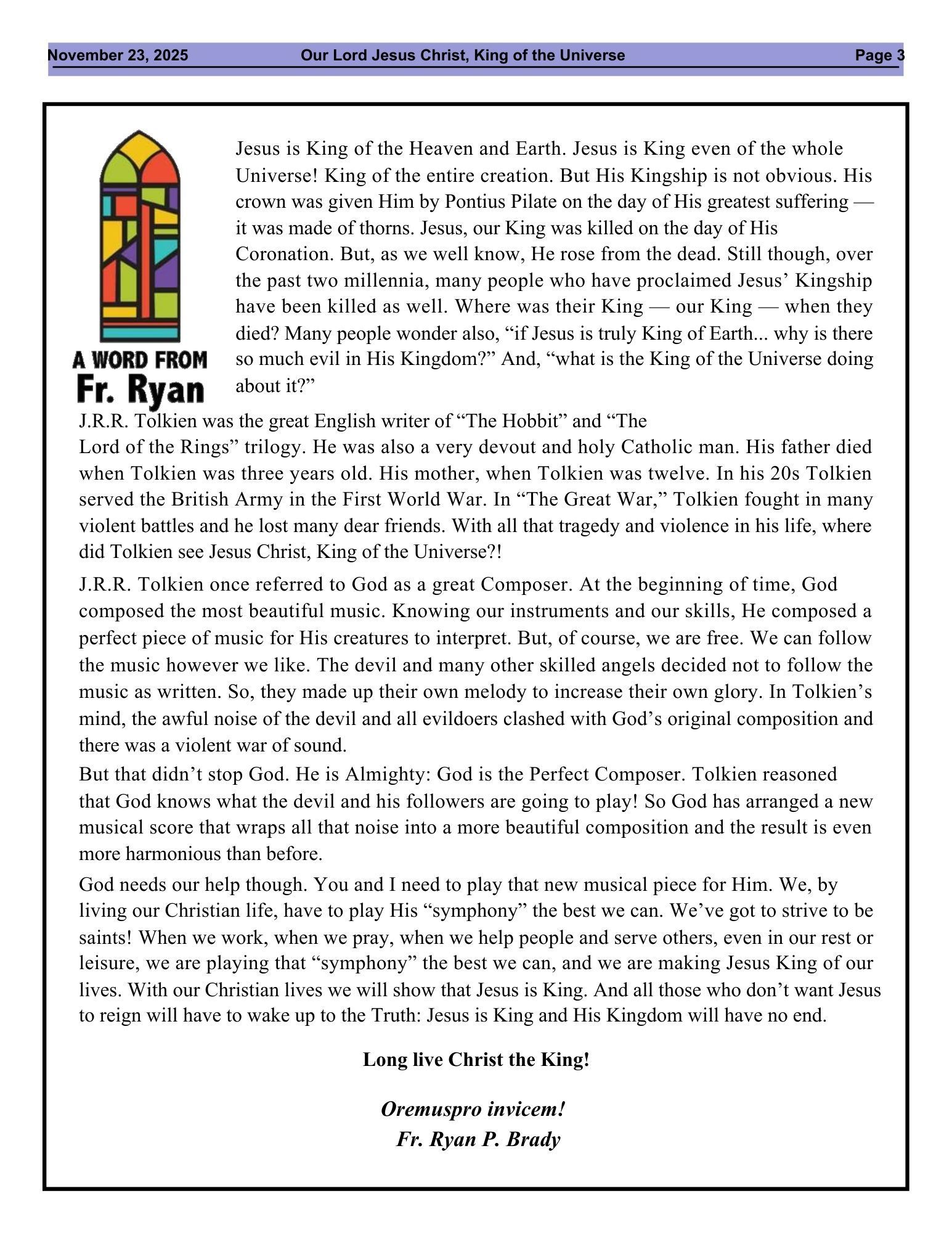 The Rectory/Parish Office is open to the public Monday through Friday from 9 a.m. until 4 p.m.