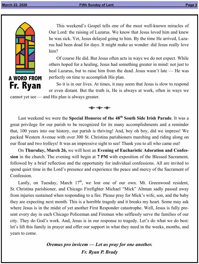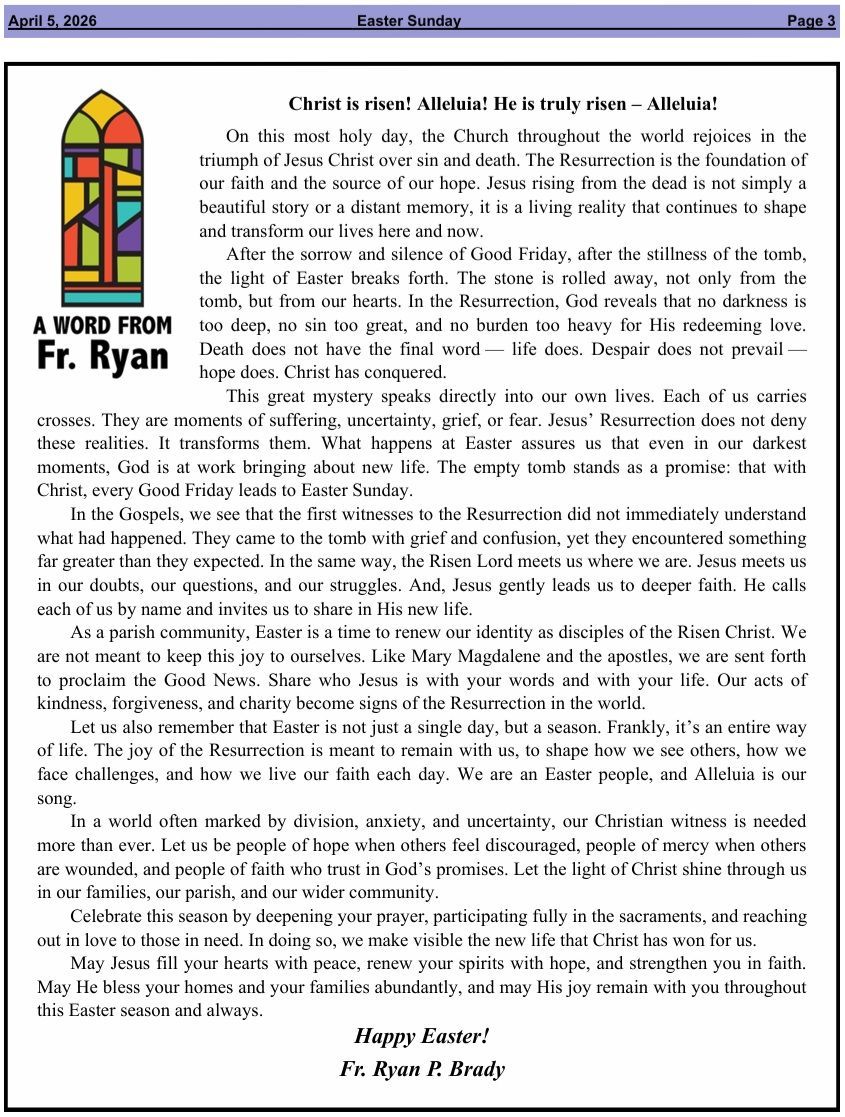 Letters From Fr. Ryan